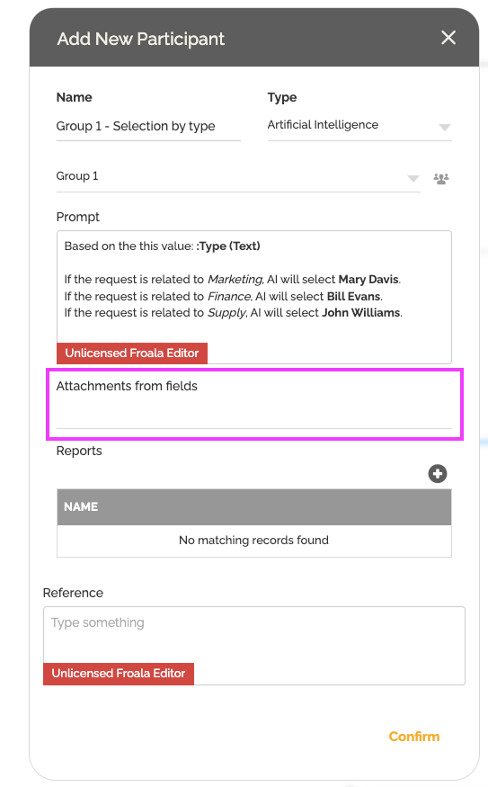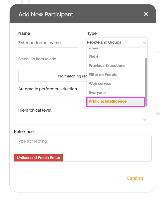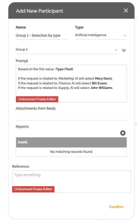 Con esta nueva funcionalidad, puedes automatizar y mejorar significativamente la lógica de asignación de tareas. Analizando tus prompts, documentos disponibles y datos empresariales, la IA selecciona a la persona más adecuada dentro del grupo de usuarios designado, garantizando una distribución de tareas basada en el contexto y las reglas definidas.