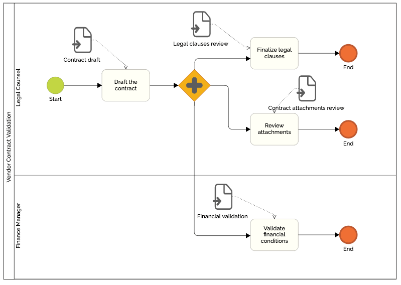 Por exemplo, se um processo se ramificar em três caminhos de tarefas paralelas, cada caminho gera um sub-token vinculado à mesma instância principal do processo.