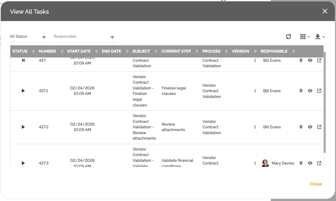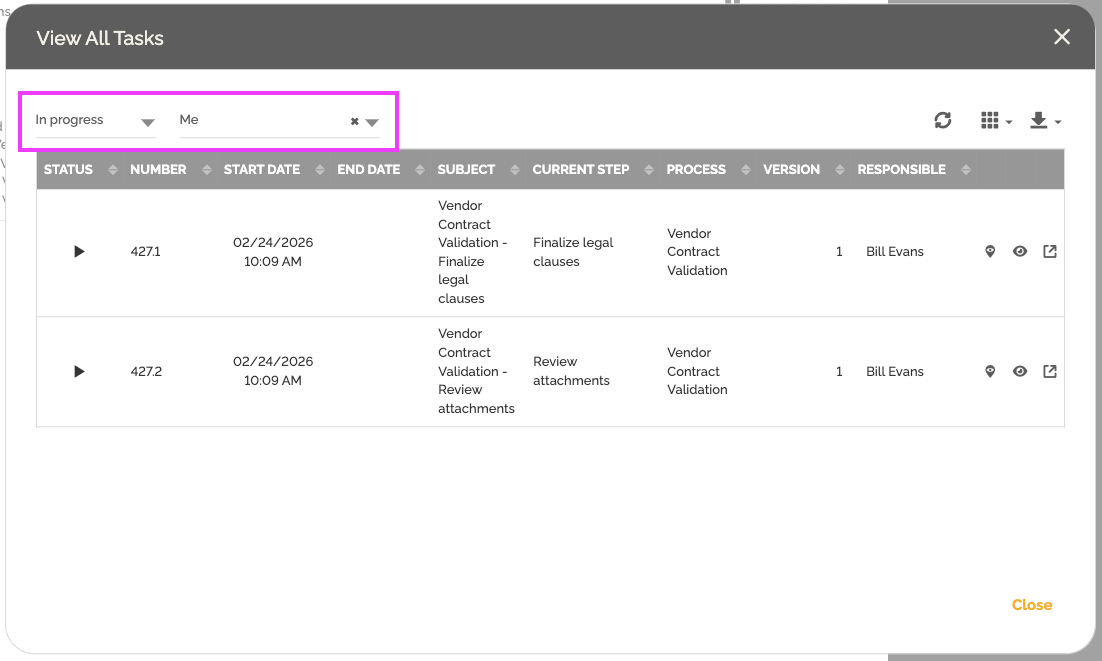 • Filtrem tarefas por responsabilidade ou status