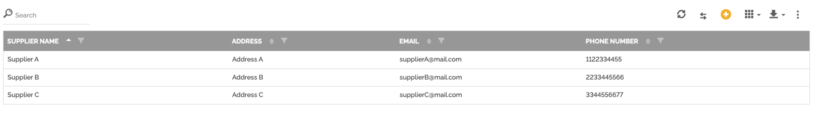 Exemplo: quando um usuário seleciona o Fornecedor A e clica no botão, todos os campos relacionados (endereço, telefone, e-mail) são preenchidos automaticamente.