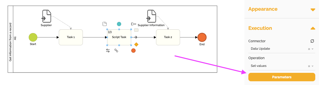 - Adicione uma tarefa de script ao seu processo (tipicamente após a tarefa do usuário que contém o formulário, ou em outro ponto lógico).